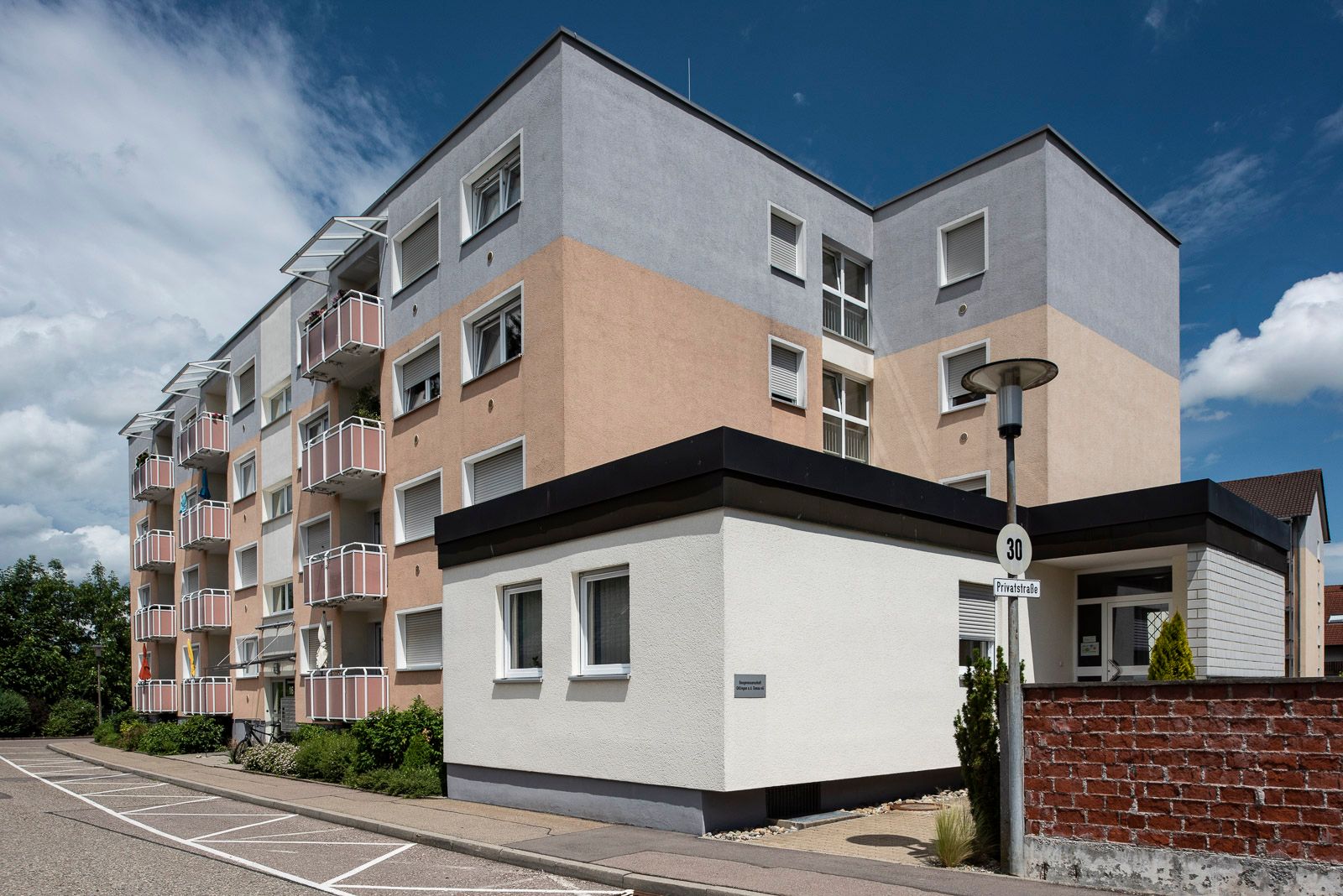 Das Mehrfamilienhaus mit 12 Wohnungen im Sozialen Wohnungs-bau in der Bischof-Freundorfer-Str. ist fertiggestellt und bezogen.